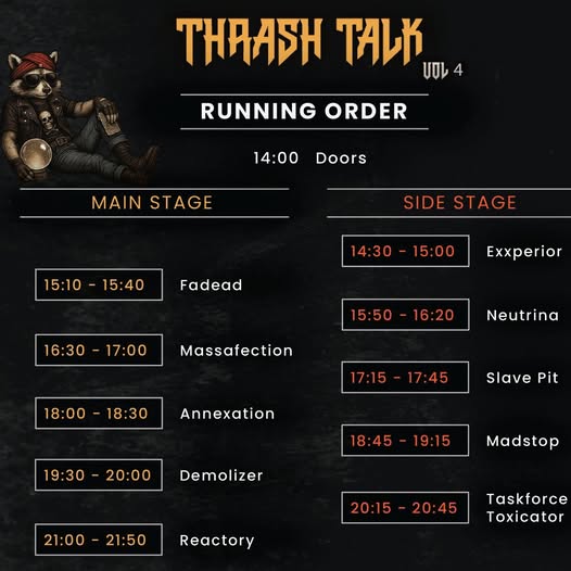 Wir haben uns vom Wochenende erholt und noch einmal alle Eindrücke revue passieren lassen. Thrash Talk, es war uns eine Freude für euch zu spielen, und trotz der frühen Uhrzeit seid ihr zahlreich erschienen. Dafür bedanken wir uns zutiefst.